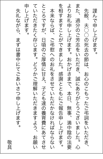 忌明けのあいさつ状文例(香典返しをしない場合)